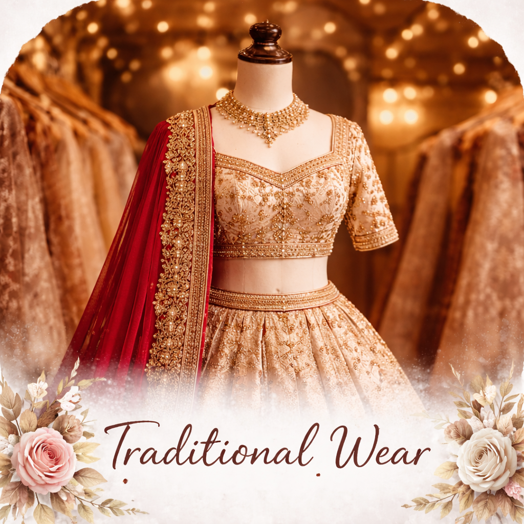Experience the charm of authentic traditional attire inspired by classic silhouettes and cultural richness. Our traditional wear collection embraces intricate embroidery, luxurious fabrics, and elegant designs that honor timeless Indian fashion. Ideal for weddings, festive events, and cultural celebrations, every outfit tells a story of tradition and elegance.